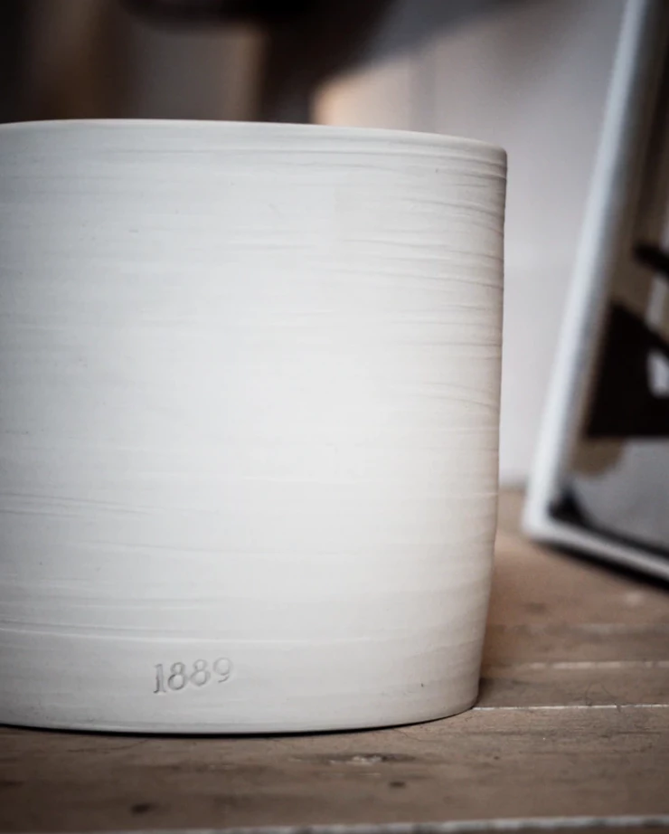 The Porcelain Clarisse Candle iby 1889 is handmade in Bozeman, Montana. The vessel is hand thrown by local artisans and can easily be reused as a vase for décor.
