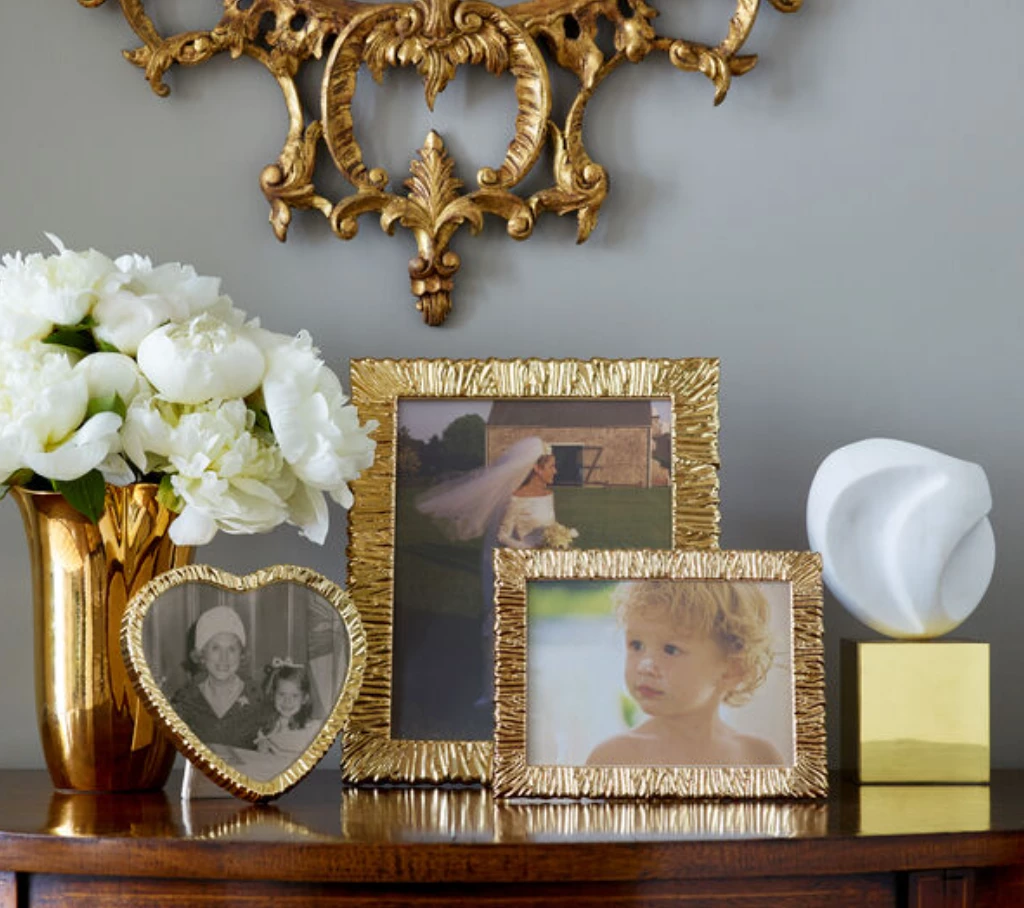 The textured finish of the Ambroise frame is based on an enlarged detail of a flower petal. Perfect for gifting, the Ambroise frame looks beautiful on a vanity.