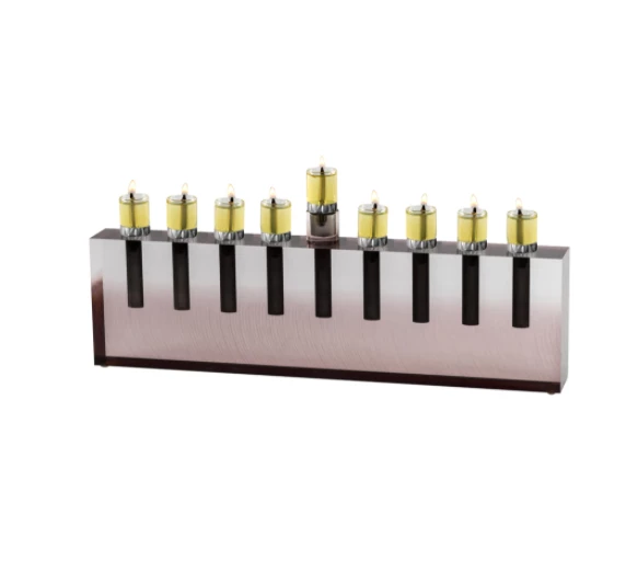 Let the light of the holiday shine bright with this attractive acrylic menorah.