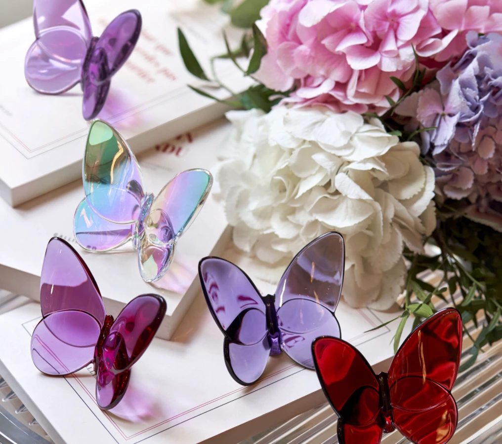 The poetic contours highlight Baccarat’s signature craftsmanship. Placed anywhere in the home, the Baccarat Lucky Butterfly elicits a sense of momentum and graceful élan. Designed for Baccarat by Evelyne Julienne, this fascinating creature comes in a wide variety of available colors including: amber, blue, iridescent, black, gold, peony, red, blue, turquoise, purple, and white.