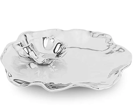 The most useful serving piece you can own! This beautiful piece goes from oven to table. Heat up to 350 degrees or chill in this elegant piece. Works as a chip & dip, serving platter for meats and a sauce as well.