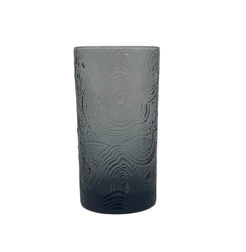 The Alyse Highball set has a textured allure with a design of overlapping concentric circles. These patterned glasses are incredibly versatile—with a capacity of 16oz. use them to serve juice at brunch, as a water glass with dinner, or to stir up cocktails during happy hour.
