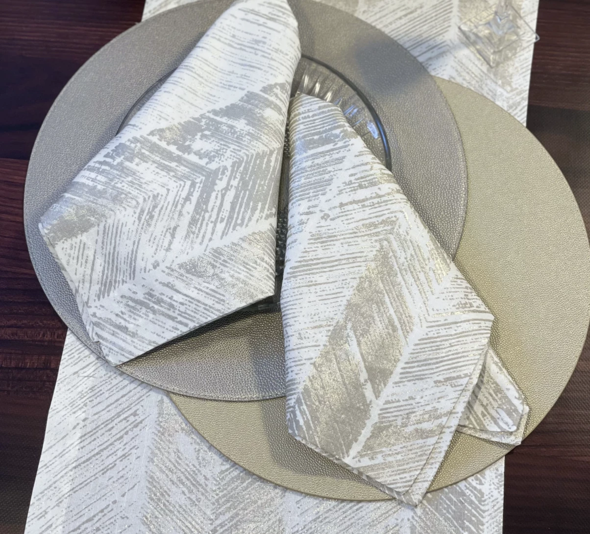 This napkin has a soft gold metallic print with a little bit of an exotic feel.