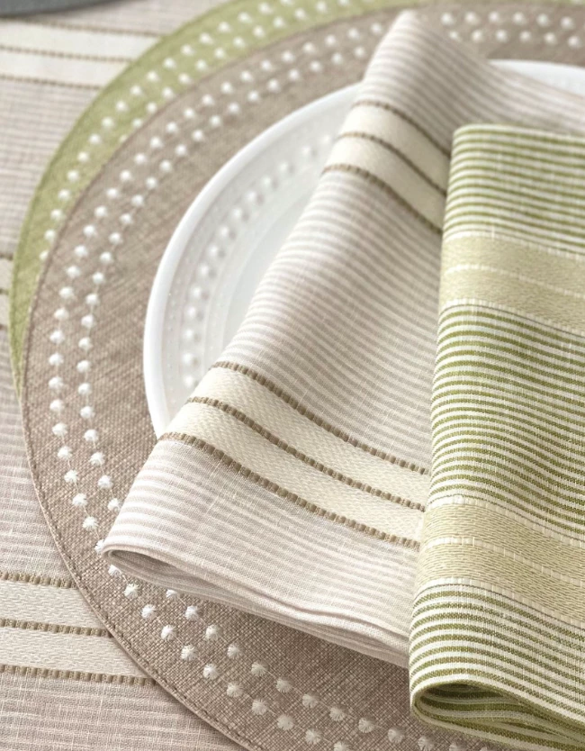 Inspired by the vintage striped chairs found on the beaches of Brighton this machine washable collection will pair perfectly with our melamine this season