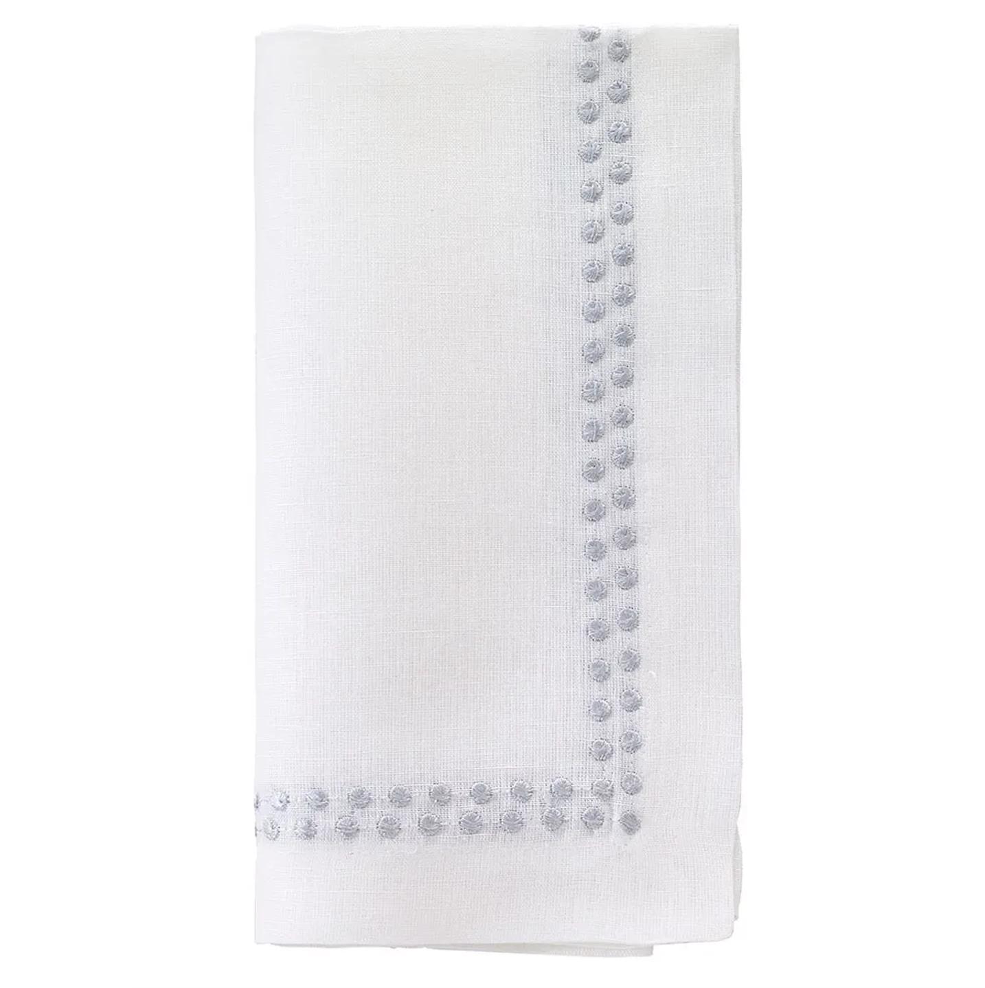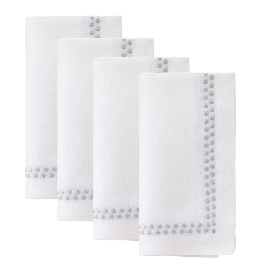 The Pearls napkin is the perfect addition to any tablescape. With a smart, tailored design of “pearl” embroidered edges, it works well with many other pieces.