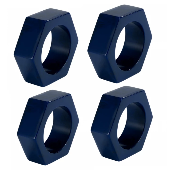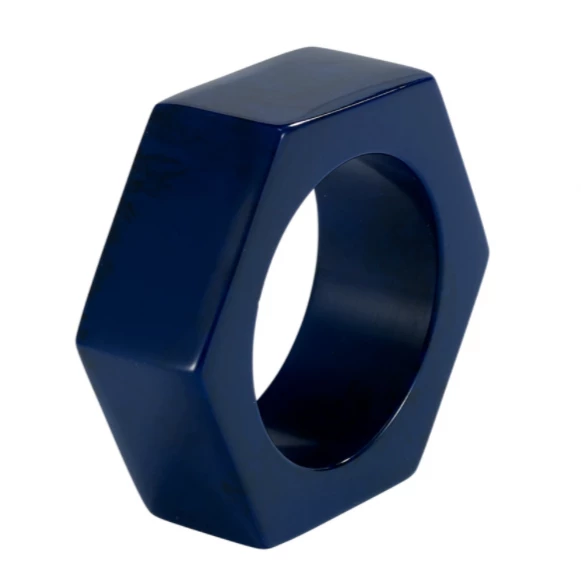 The modern design of the Piper napkin ring has a hexagonal shape and a marble finish in grey. A simple ring that works well on many napkins.