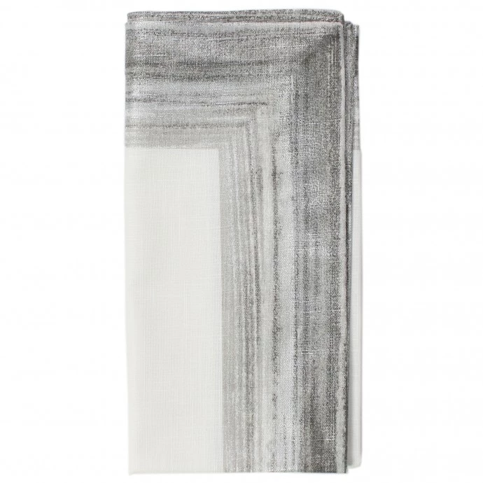 A stunning woven fabric in with metallic tones and the simple graphic motif allows these linens to match many dinnerware styles.