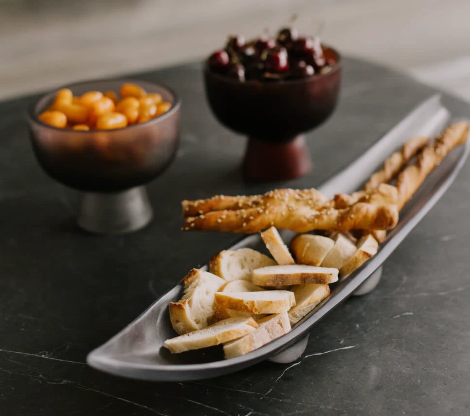 The Resin Boat Serving Piece is the perfect way to serve up appetizers, just fill it up with anything from veggies to breads and they will look gorgeous in this footed piece.
