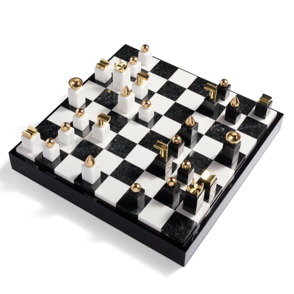 A thoughtful combination of fine textures and finishes, this Chess Set expresses the more playful side of L’Objet. Marble and brass chess pieces are abstract interpretations of the iconic movable objects.