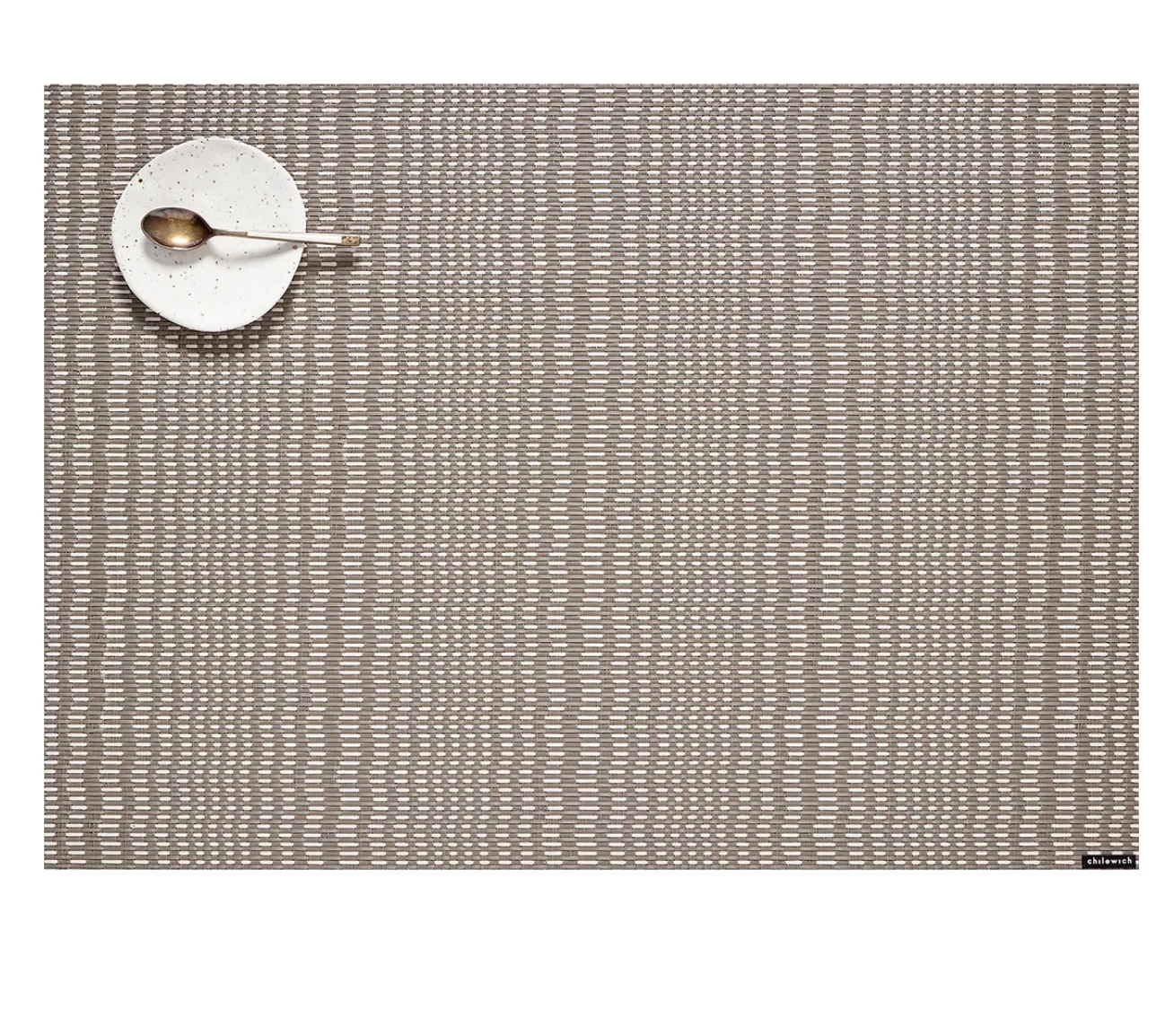 Chilewich does it again with this pretty easy to care for Mat. The modern neutral design makes a great background for your dinnerware and is ideal for indoor or outdoor use