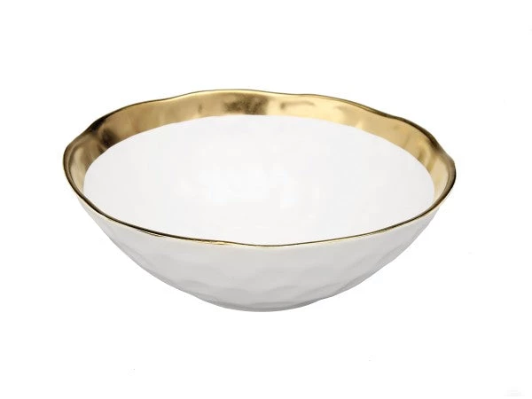 This classic bowl with a classic gold edge is useful for serving at any meal. It can be used as a serving bowl, a fruit bowl, or a centerpiece dish.