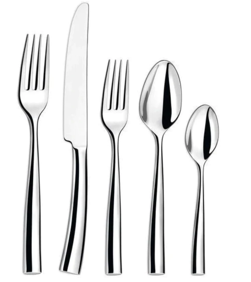 - 5 Piece Set includes Table Fork, Table Knife, Medium Teaspoon , Dessert Spoon , Dessert Fork.