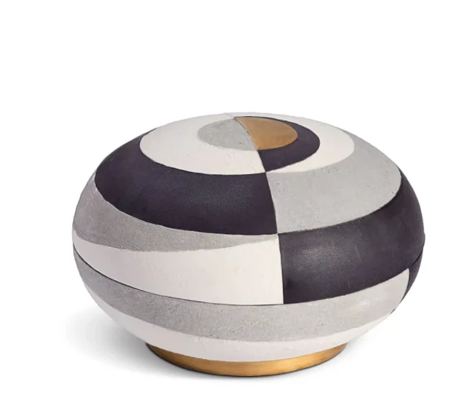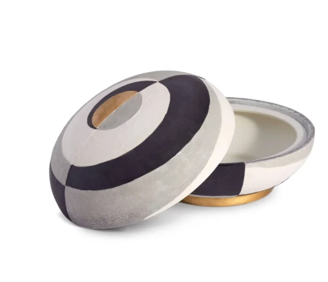 In Cubisme, abstracted forms are remodeled with concrete simplicity into decorative pieces for the home. Finely-textured vases, table lamps, floor lamps and a decorative box are hand-painted in geometric patterns. Each piece is meticulously crafted from fine earthenware and finished in contrasting black, white and grey matte glazes.