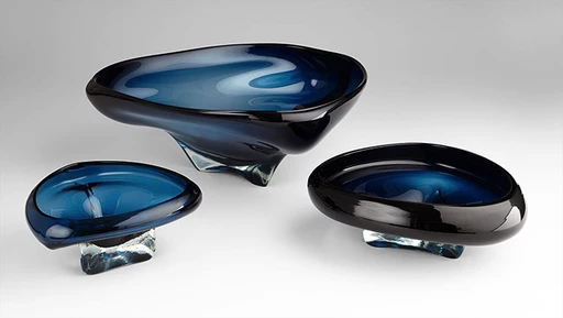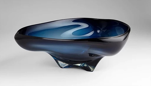 This modern bowl is blown in an abstract triangular form and given ample storage depth for added versatility. Named after the Greek word for “friend,” the Alistair Bowl is made of durable thick glass, in an Oxford Blue tint.