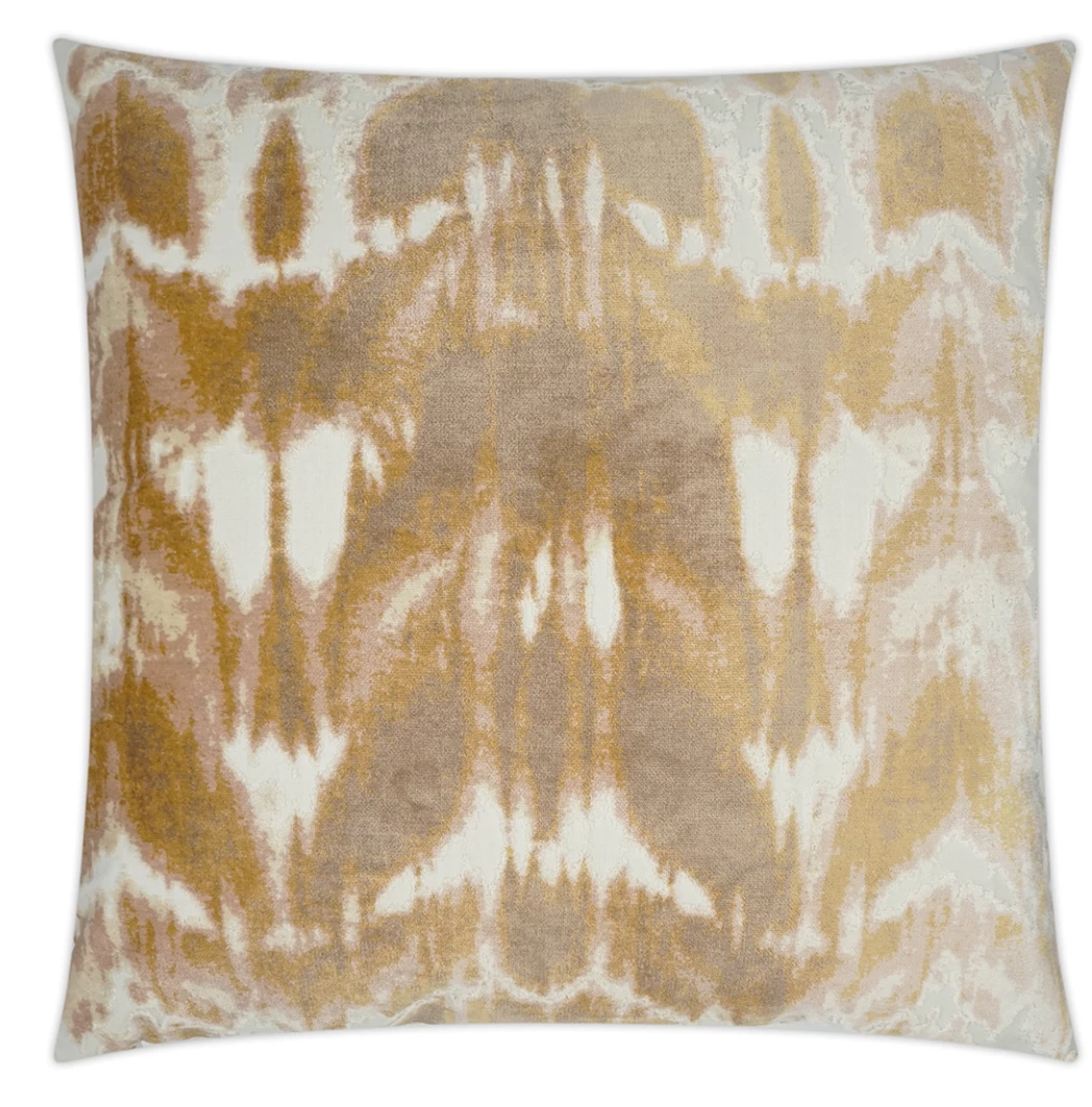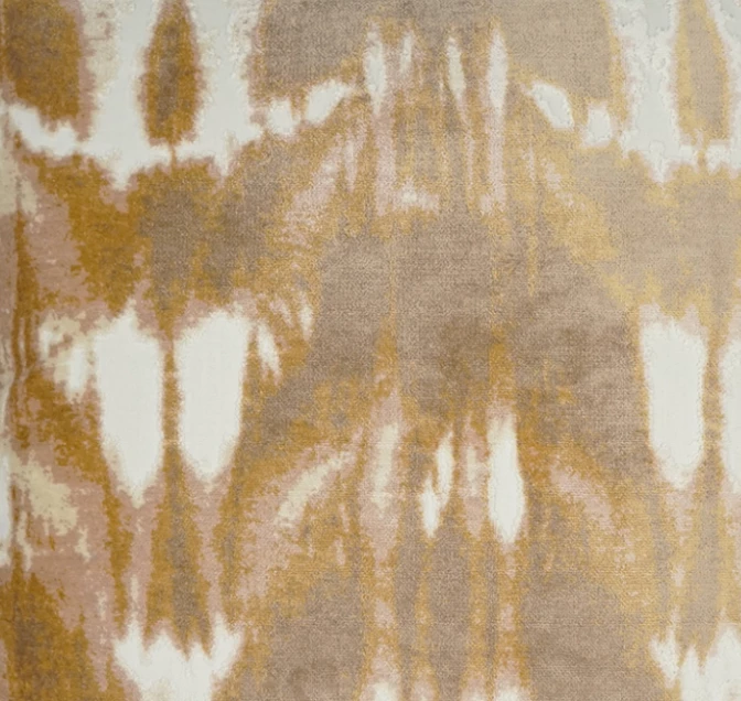 An ikat design in a mix of neutral greys, cream and topaz that can elevate any space.