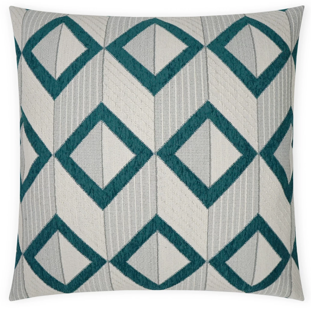 Peacock & cream come together in this bold geometric pillow.