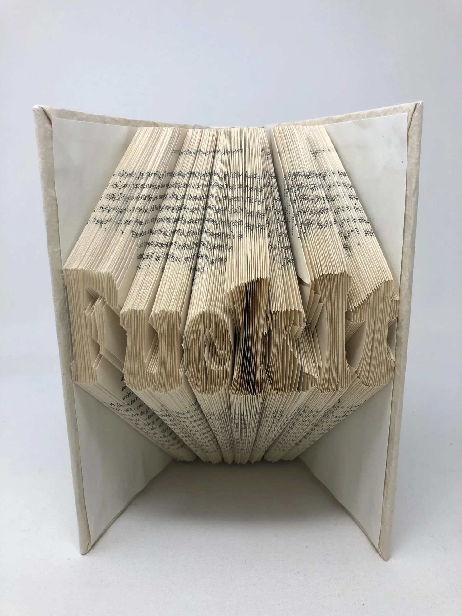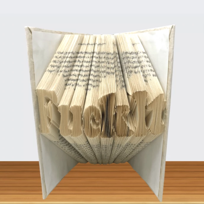 The folded book is a piece of art with folded pages spelling out “FUCK IT” A little added fun, edgy and artistry for a shelf.