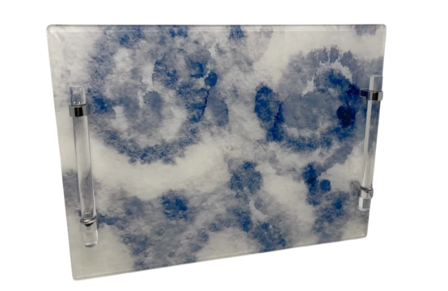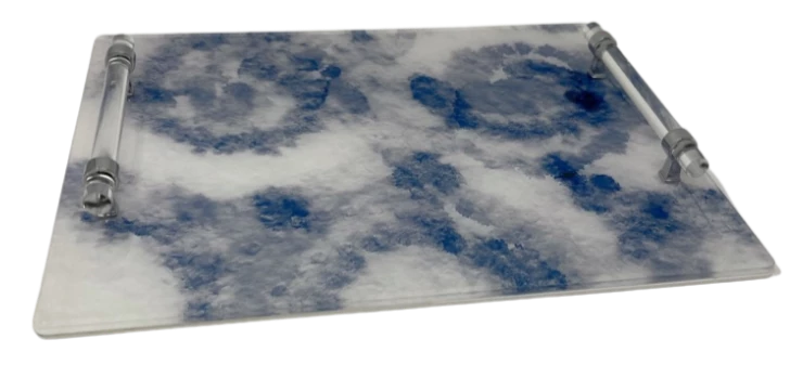 The Boho Acrylic Tray has a lively, colorful design with sleek, lucite handles. It can be used as a layering piece or for serving indoors or outdoors.