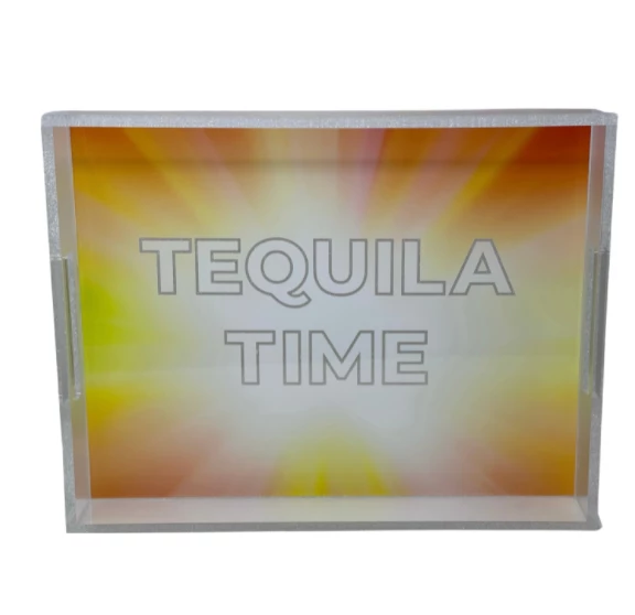 Perfect for cocktail hour, the tray has handles for easy serving. Matching coaster set is available.