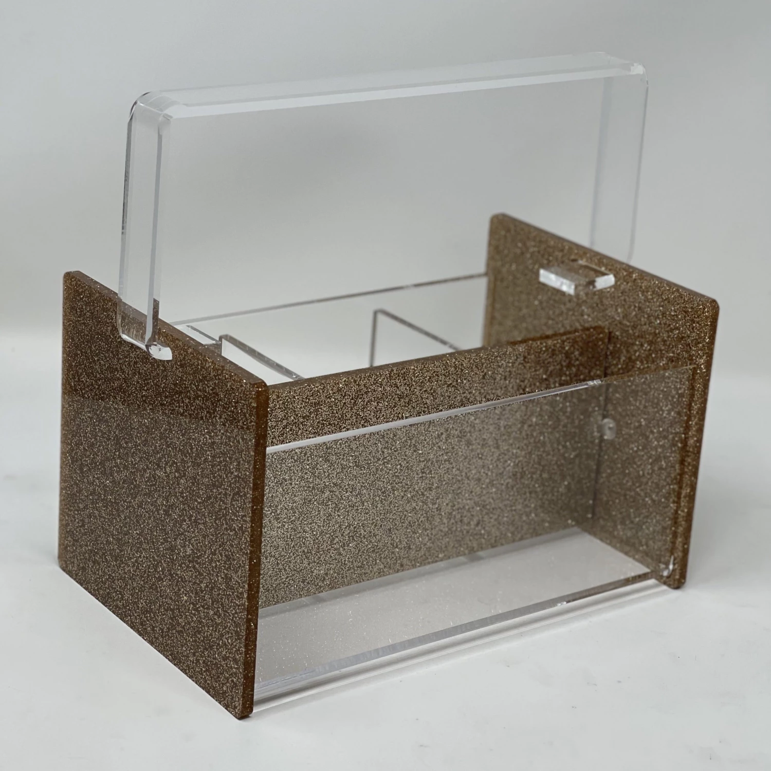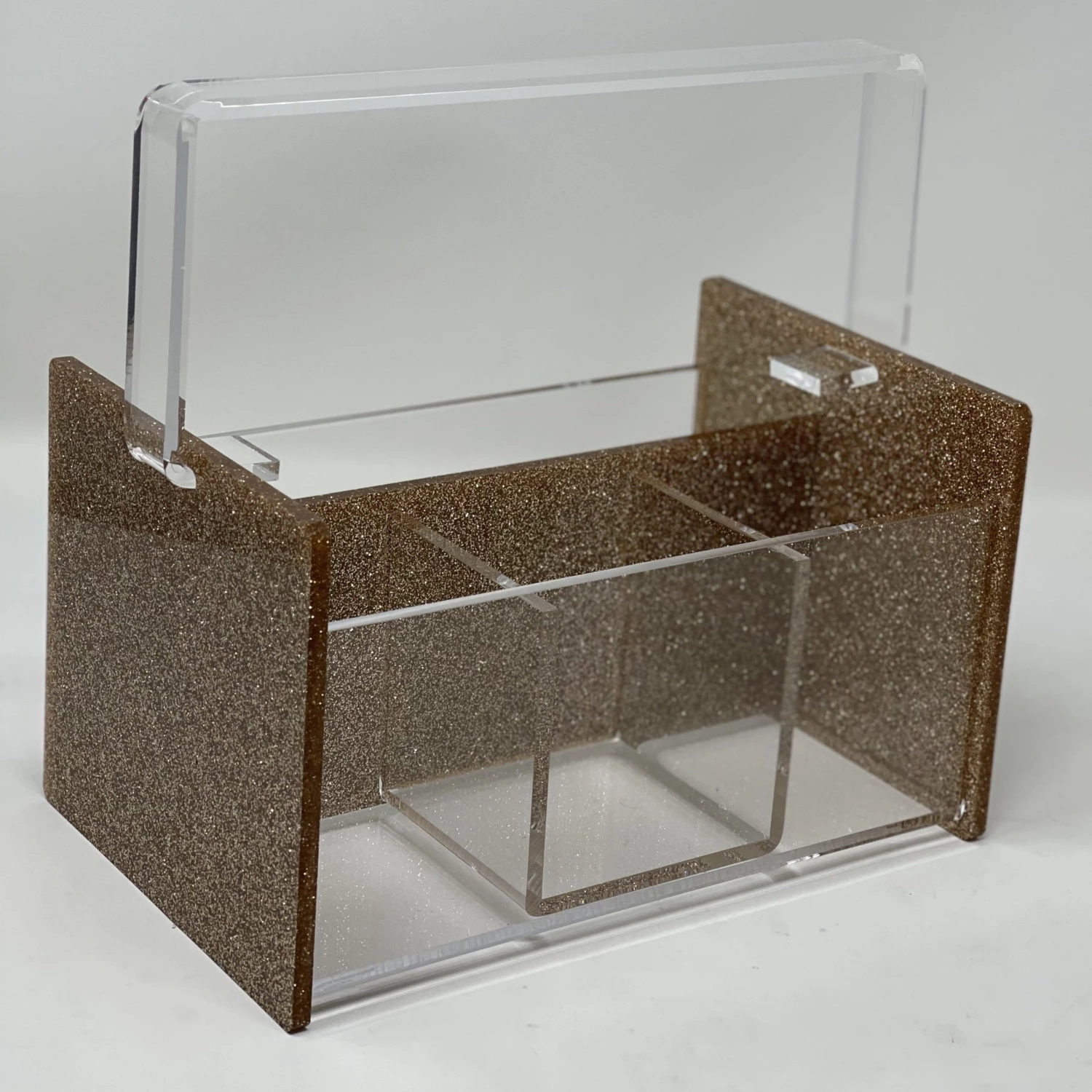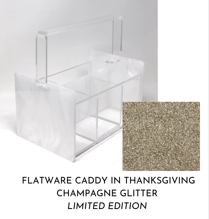 A CURRENT HOME FAVORITE GETS A TWIST FOR THE HOLIDAY SEASON. SHIMMERING CHAMPAGNE ACRYLIC HAS BEEN USED TO CREATE THIS FABULOUS SERVING PIECE TO MAKE YOUR TABLE DECOR LOOK FESTIVE FOR THANKSGIVING & CHRISTMAS .