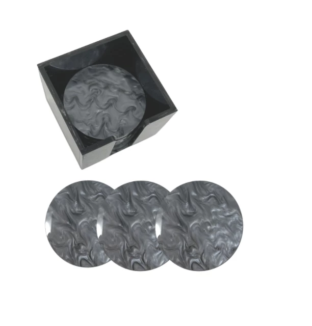 This set of coasters is an elegant and beautiful way to accessorize your bar and protect your furniture while serving your favorite drinks. Makes a great hostess gift!