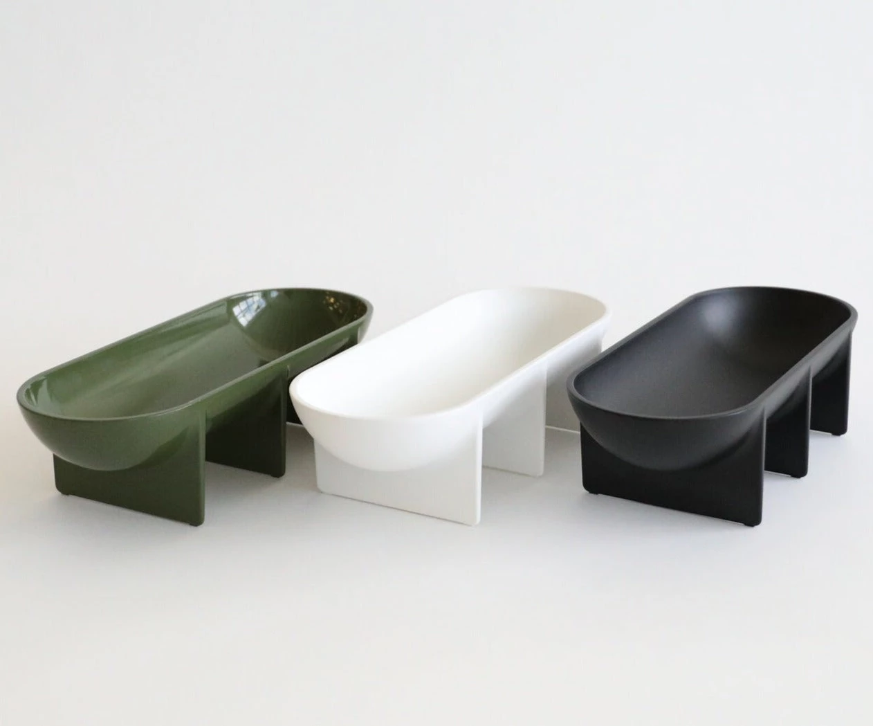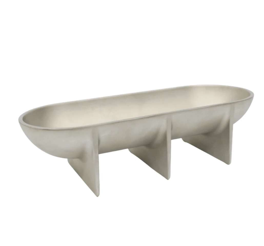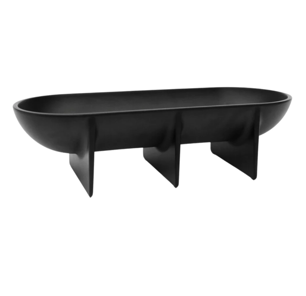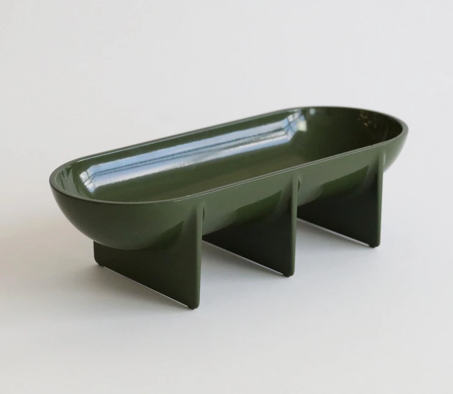 The die cast aluminum Standing Bowl is elevated off the table surface by its architecturally inspired planar legs. Each bowl is matte powder coated with a slight texture to catch the light and add an enjoyable feel.