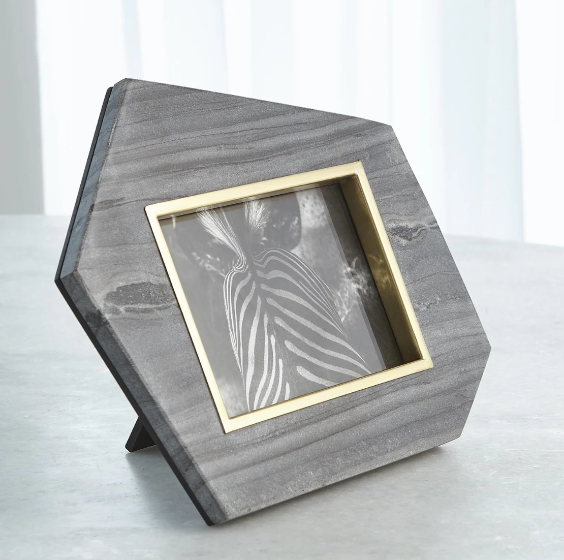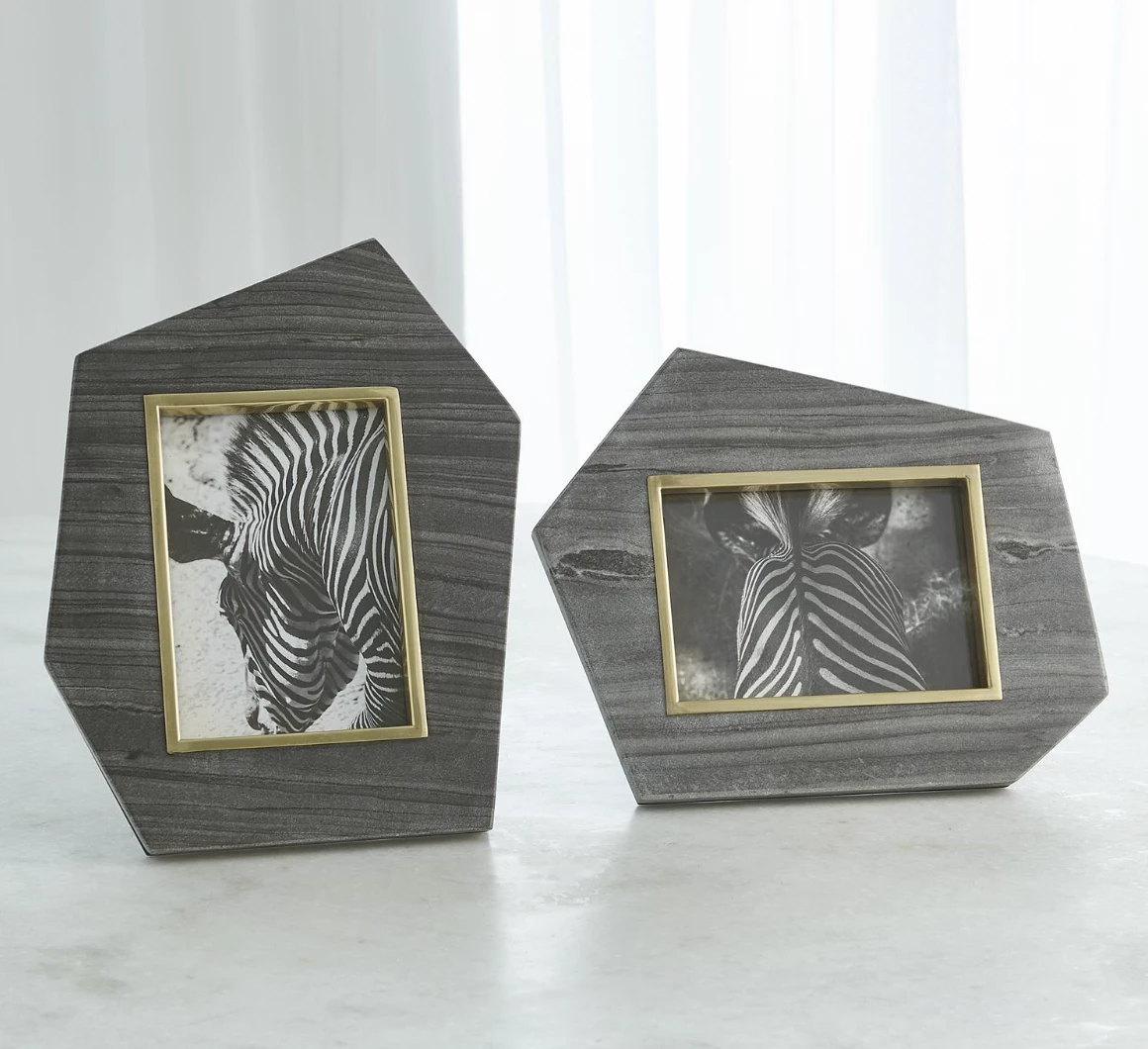 Geometric forms and organic materials work together to create a chic frame that is perfect for showcasing art or favorite memories.