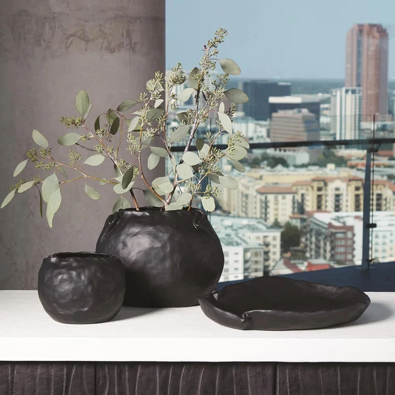 This delicate pinch-bowl is reproduced from a hand made original in ceramic by two brothers in their studio in Italy. The organic design makes a wonderful piece on a kitchen island or coffee table