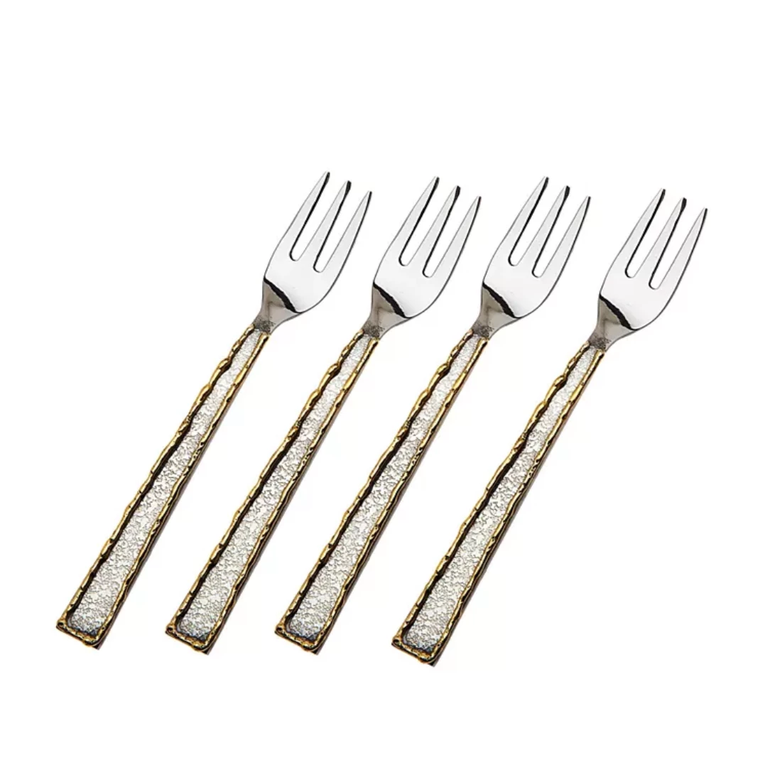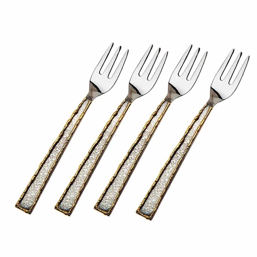 The Golden Frost Fork set includes 4 pieces and is perfect for cheese, snacks and appetizers or desserts. We love the sophisticated mix of metal on the matte silver plated finish.