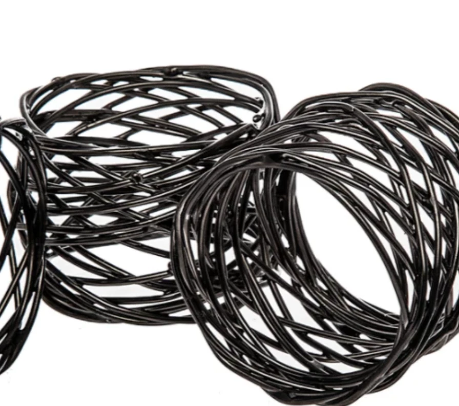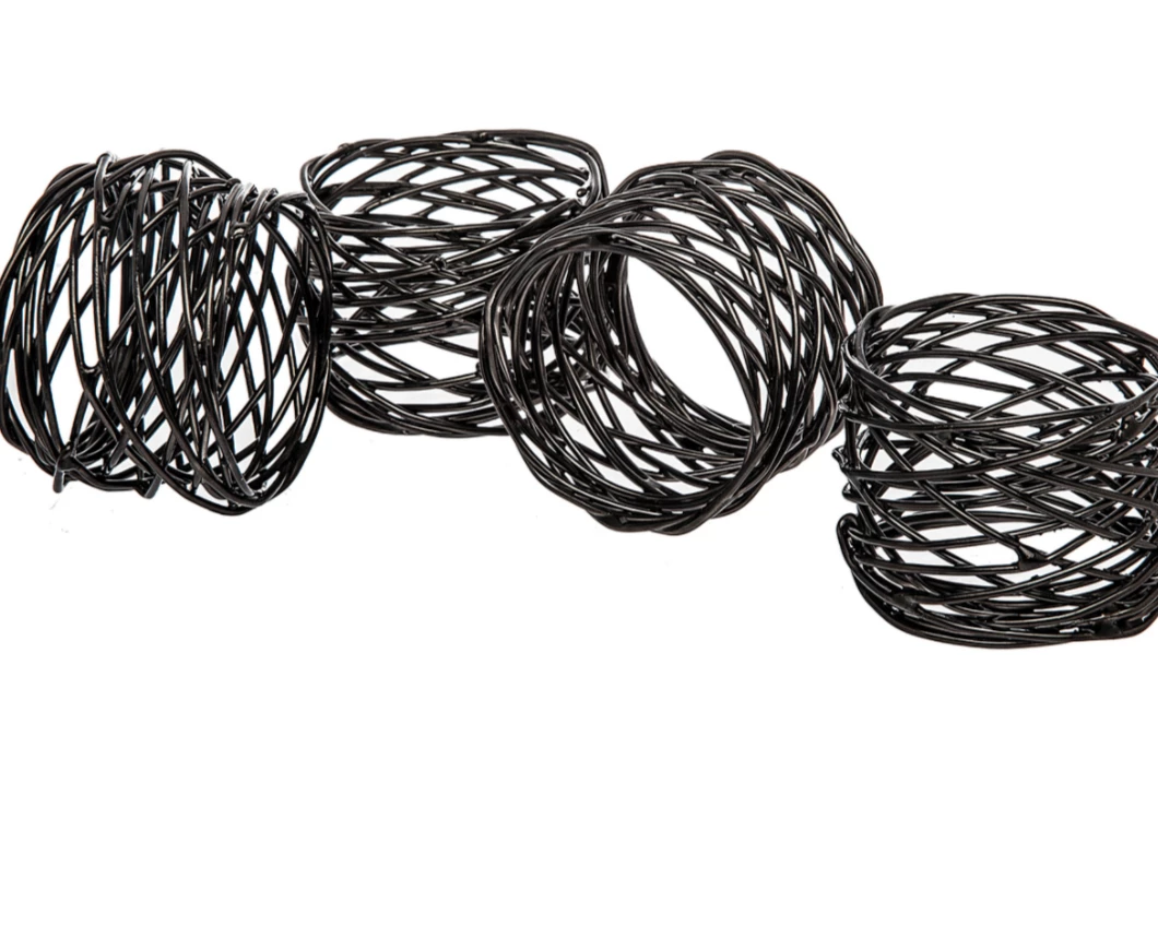 A mesh detail napkin ring in a black metal that is easy to use day into night and has a wonderful sophisticated look.