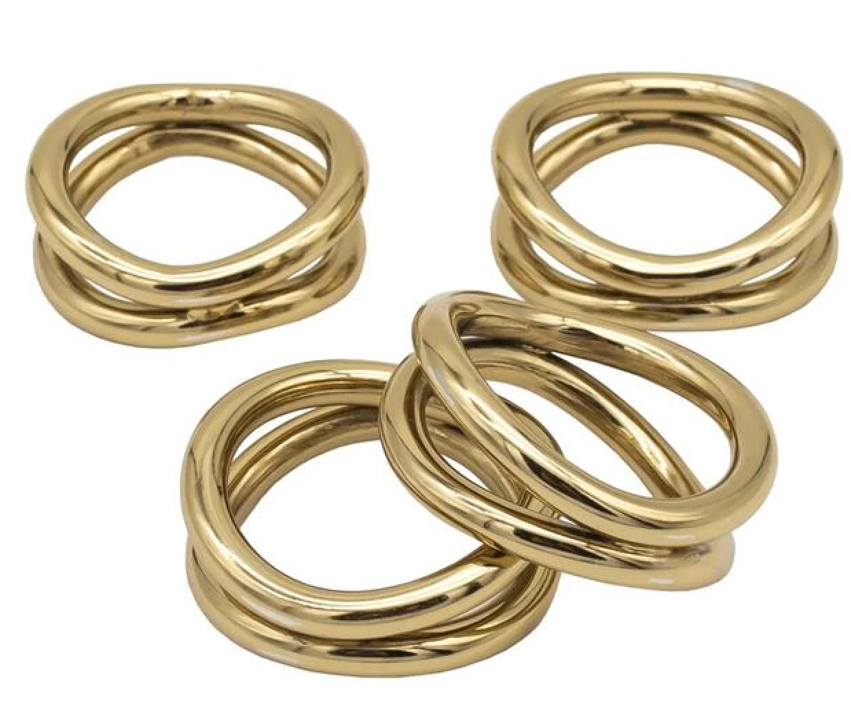The gold Twisted Loop napkin ring offers a durable metal napkin ring with a clean minimal design that can complement a casual or formal dinner setting.