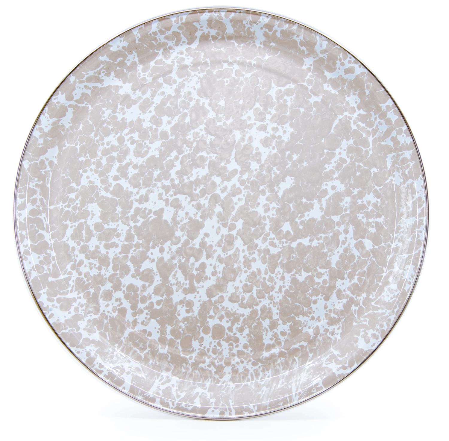 This collection will quickly become your favorite. The enamelware is made of carbon steel coated with a porcelain enamel and trimmed in stainless steel. The perfect tray for serving at BBQ or add a small bowl and turn the tray into a fabulous platter for starters.