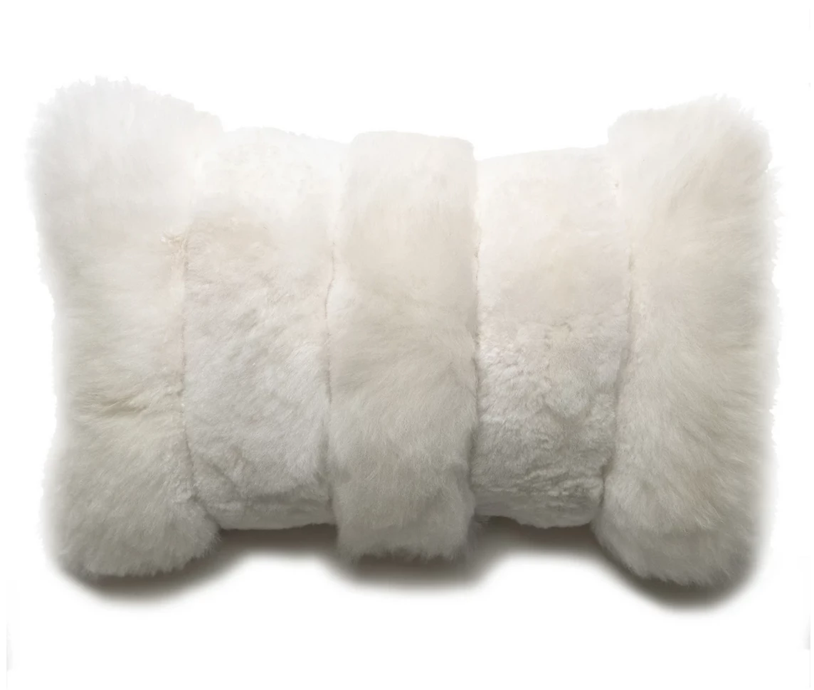 Our new Alpaca pillow offers a luxurious, super cozy pillow with a stripe design in a bright white colorway. .