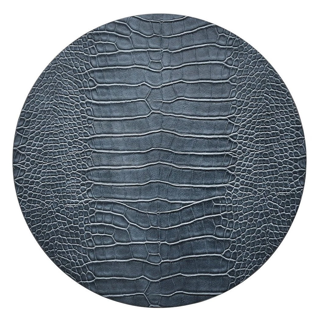 The round embossed faux Croco Placemats are the perfect staple. The organic yet sophisticated crocodile pattern in Cadet works in any season. They are easy to care for; simply wipe down before storing.