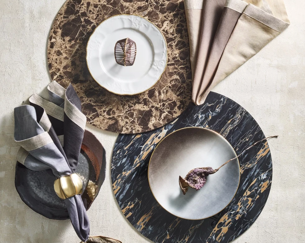 A sophisticated take on the uniform and harmony found within naturally occurring minerals, the versatile Mineral Placemat by Kim Seybert, is perfect for year-round entertaining. Mimicking the raw form of granite, a material produced in volcanic arcs and mountains.