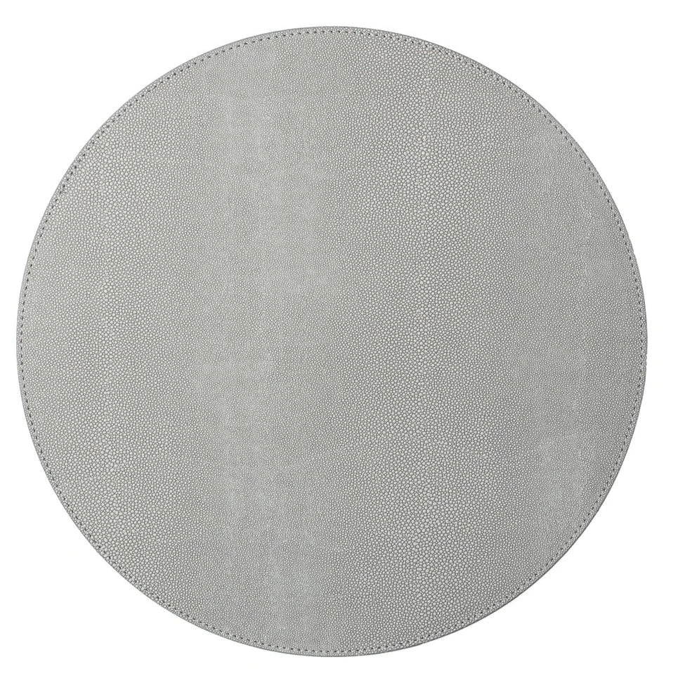 The Shagreen Placemat in elephant features a sophisticated faux granular hide. A beautiful replica of the traditional rough pattern, this placemat is sleek and elegant. The elephant gray color completes this polished look. Perfect for everyday dining or for an lavish dinner party, these placemats are easy to care for; simply wipe down before storing.