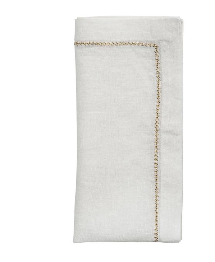 The Star Napkin is a classic white linen napkin embroidered with a delicate star design on the border of the napkin. These linen napkins by Kim Seybert, can be used for any type of table setting, from casual lunches to formal evening affairs. For the bride to be, these napkins are a beautiful addition as bridal shower napkins or for a rehearsal dinner.