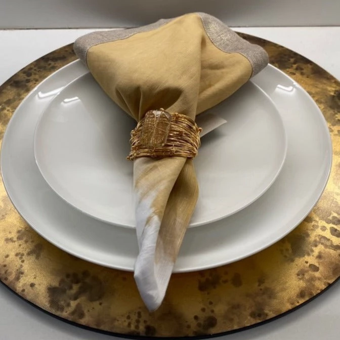 The Solstice Napkin in stunning in contrasting colors is created by pleating and tying the linen napkin. Each end is dipped in a different color to create an unexpected tie-dyed effect which translates to versatile linen napkin that can be used year round.