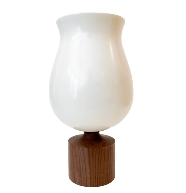 Walnut and porcelain come together to create this elemental beauty. The Teddy vase is is hand-made and hand-glazed, high-fired to over 2150ºF. The hand-turned walnut meets FSC guidelines and is harvested from low-risk forests.