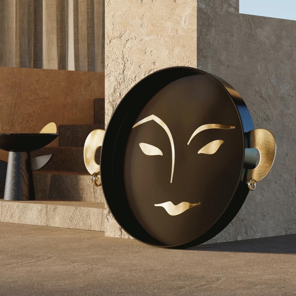 From the newest collaboration between L’Objet and brilliant rule-breaking designer Kelly Behun, This surreal decorative tray offers an elevated, whimsical experience. Beautifully crafted from black resin inlaid with a maze of brass.