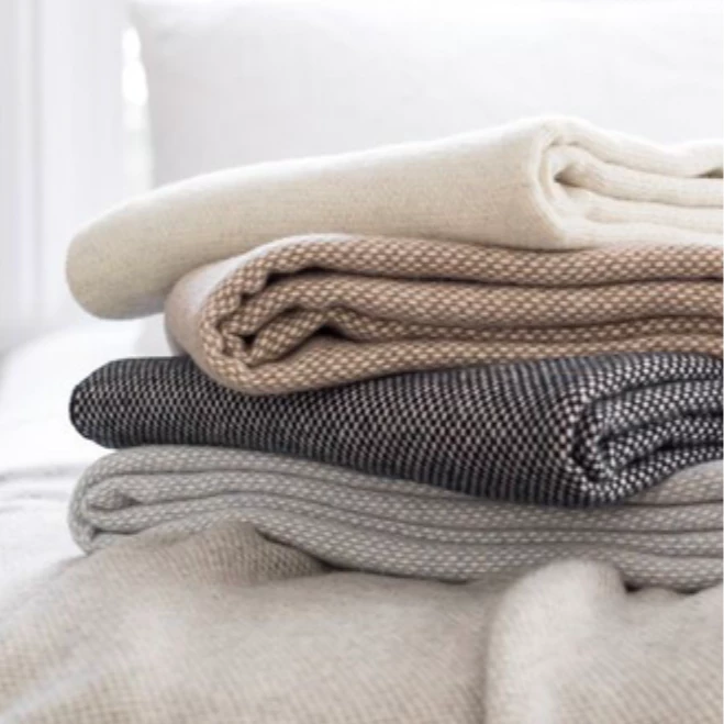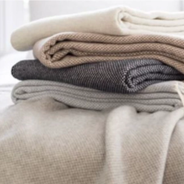These handsome throws are woven from pure cashmere and lambswool in a luxurious basket weave. They offer a timeless design and sumptuous softness and cozy warmth year round.
