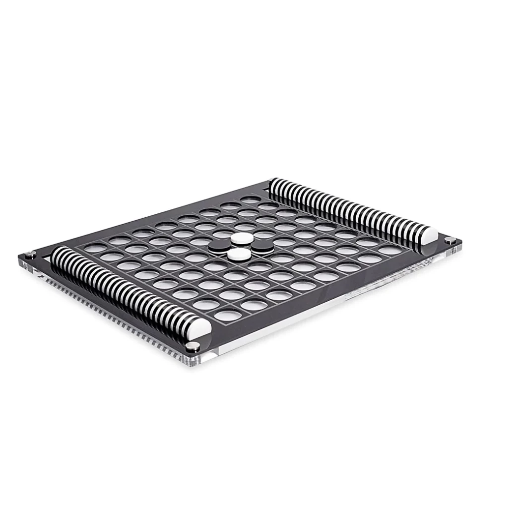 A classic game of Othello reinvented in a striking acrylic design. This fun game looks great during play or even left out as decor on a coffee table.