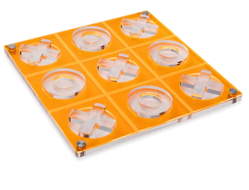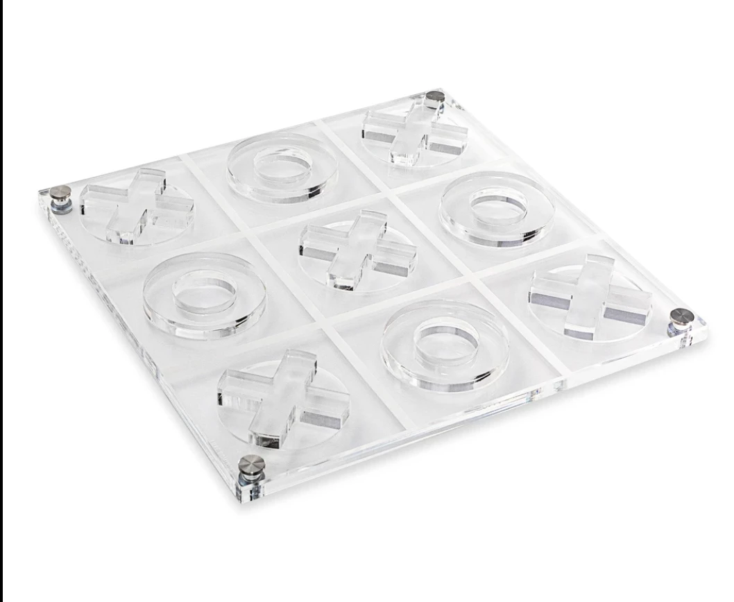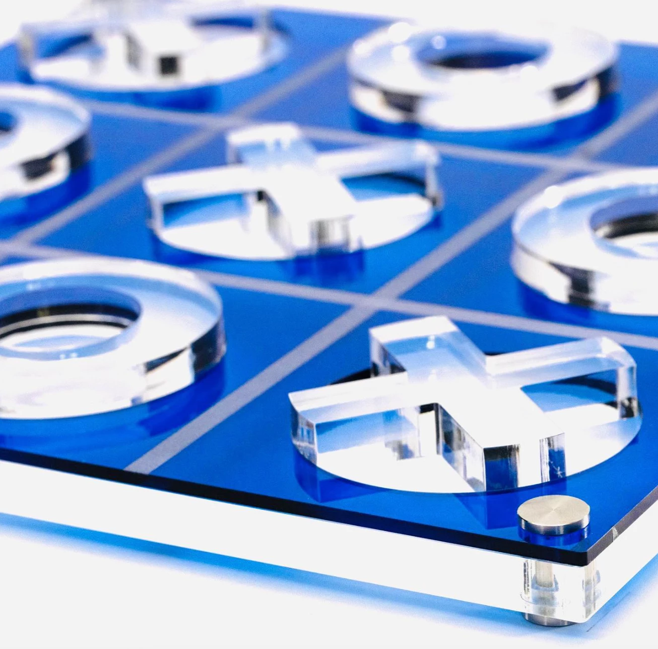 This modern versión of Tic-Tac-Toe transforms any room. It grabs the light coming in from any angle and passes it through the entire board and pieces.
