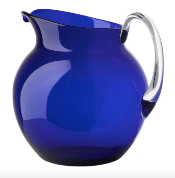 Add a colorful twist to beverages with this Pitcher. Crafted from practical acrylic that imitates the beauty of solid crystal, this simplistic pitcher has been shaped with a large, attractive curvature sure to catch the eye. Finished with a contrasting clear handle and makes a wonderful addition to any dining table.