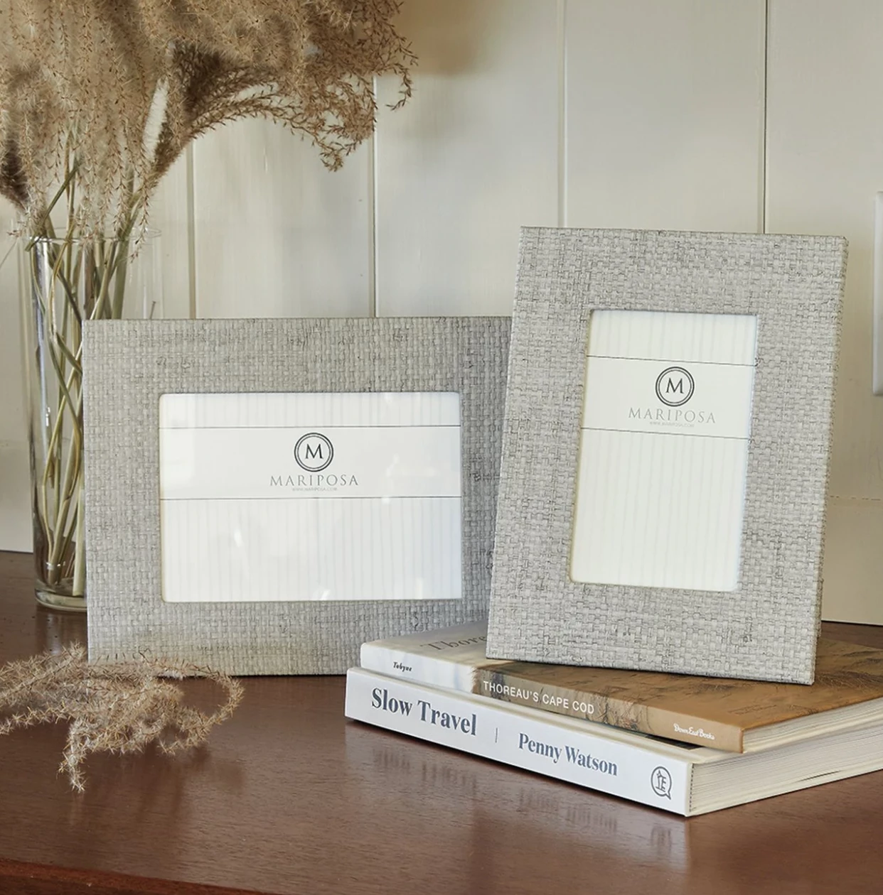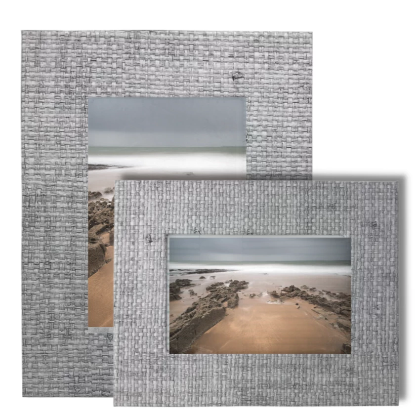 These grasscloth frames have a woven texture that adds a wonderful element to your decor. With a pale grey Faux Grasscloth texture, the frame will provide a fresh look to your home and is an undeniably chic way to display your special photographs.