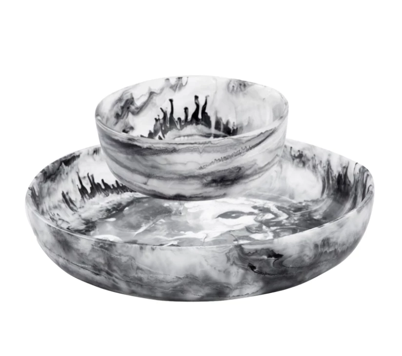 This is our go to collection for serving big or small groups. These resin hand crafted pieces are durable and easy to clean. The pattern is beautiful and easy to use both in and outdoors. Great to serve salads, fish, meats or fruit.