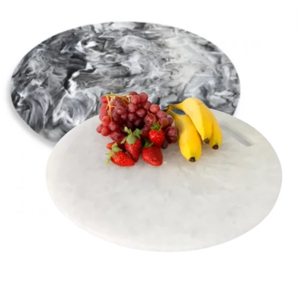 Our Resin Swirl Collection is a CH Favorite. The super chic piece is handcrafted of smooth resin with simple, clean lines to show off the mesmerizing marbled color. The pieces are wonderful to mix and match yet durable enough for everyday entertaining indoors or outside. Use the round board for sushi, starters or as a layering piece on a kitchen island as decor.