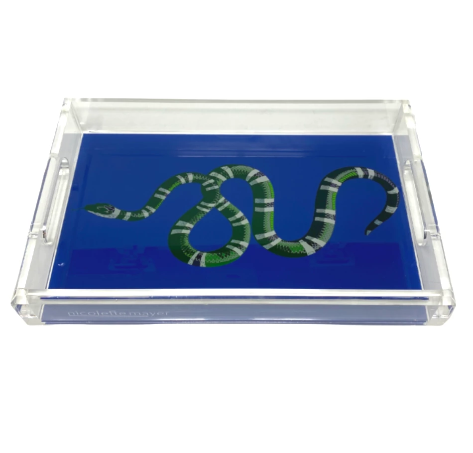 The serpent vanity features a serpent image on a blue background across the tray and make a perfect place to display items. Makes a great gift.