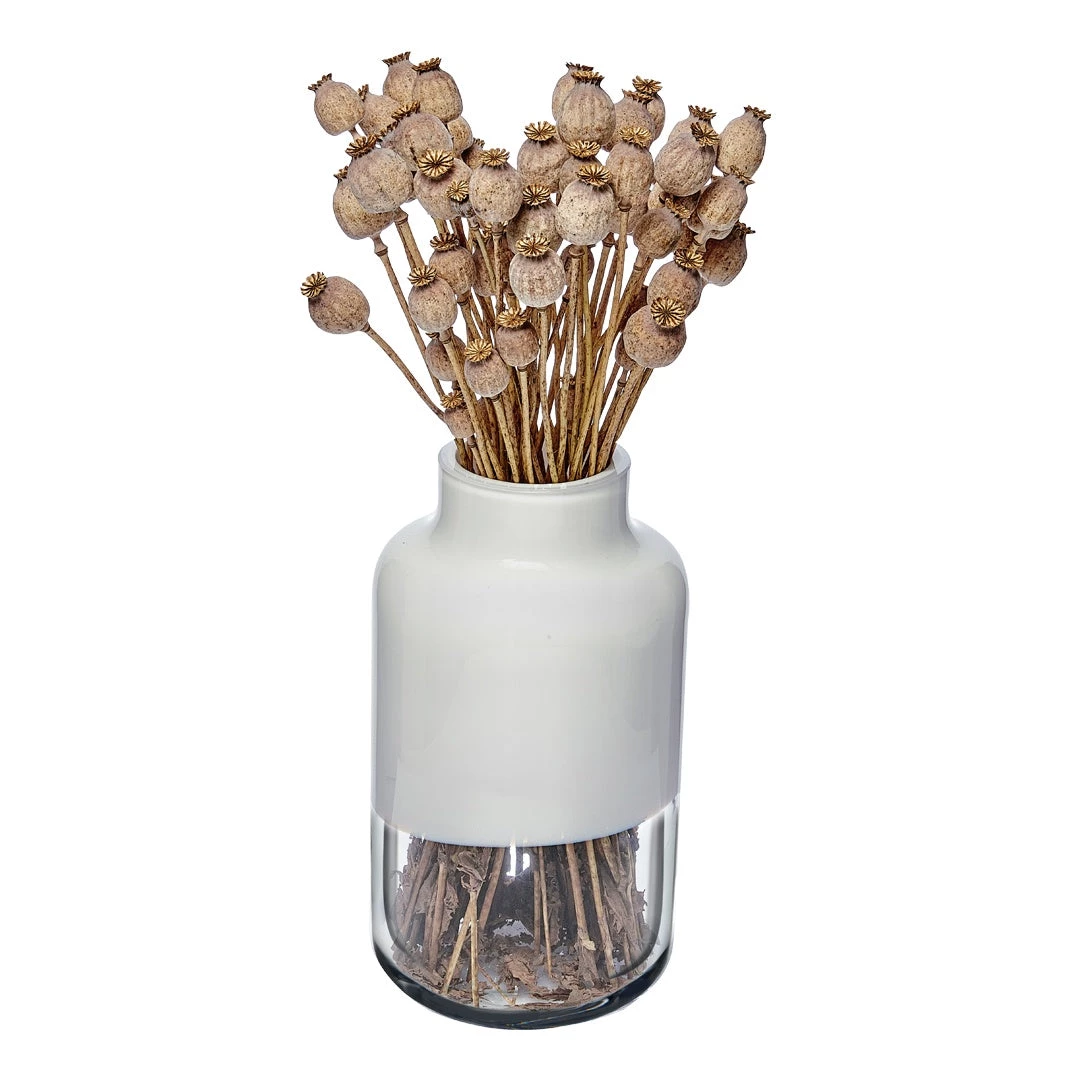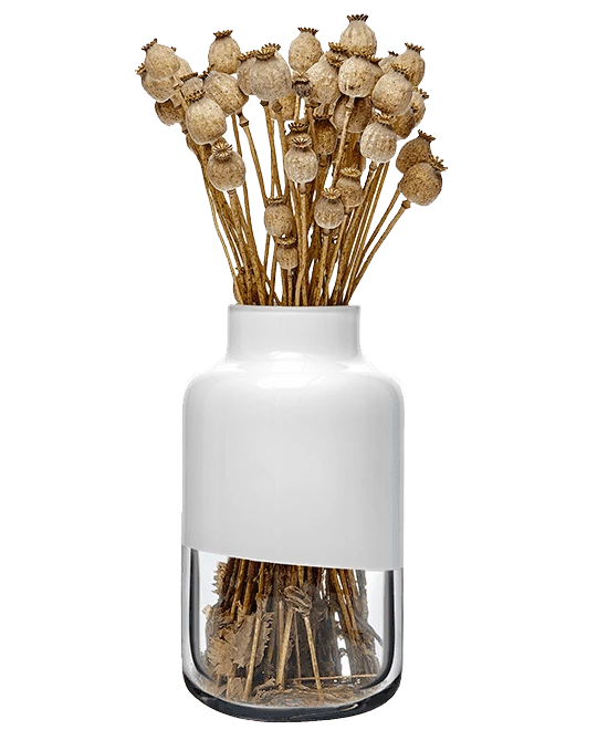 Each Magnolia Vase is hand blown, the bottom half of the vase remains clear while half the glass is white. Delightful to use all around the home. Each one will vary and be unique because of the method they are created.