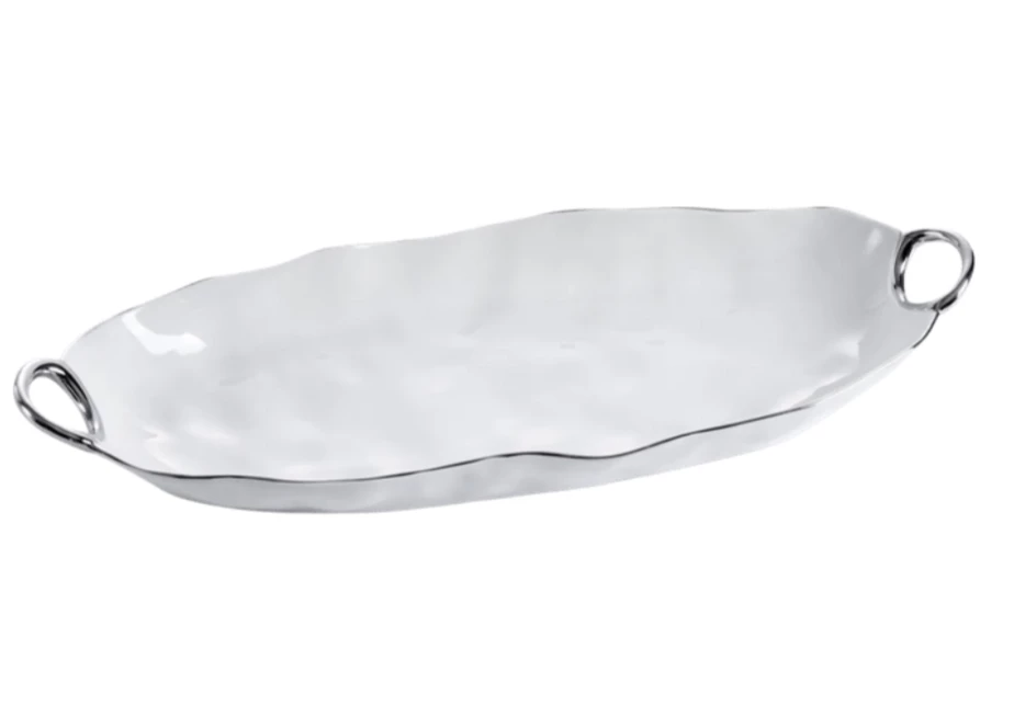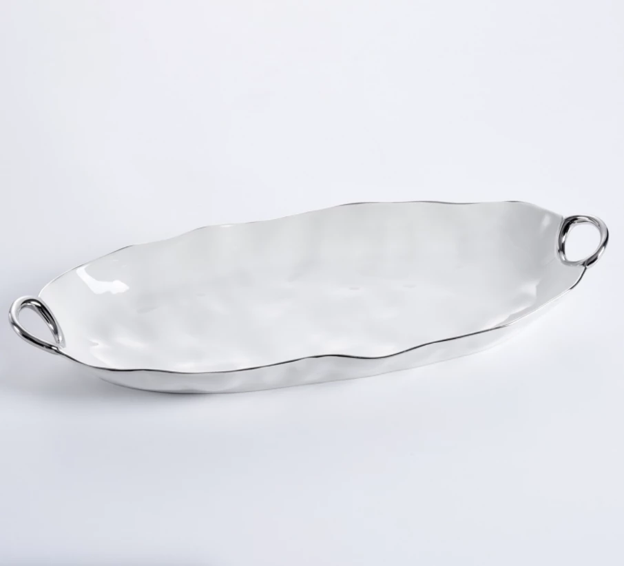 - High Fired Porcelain Serveware with Silver Titanium Trim